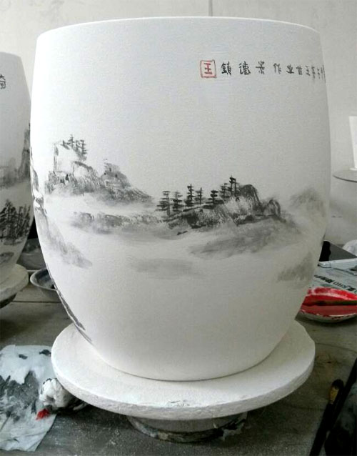 2014年9月17日——19日,北京水墨同源国际书画院王世业院长,携副院长宋来起、韦公衡等一行八人书画家赴景德镇,进行了青花瓷的艺术绘画、书法和创作。